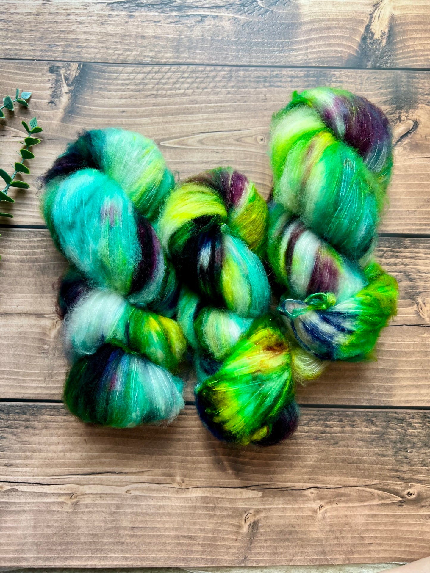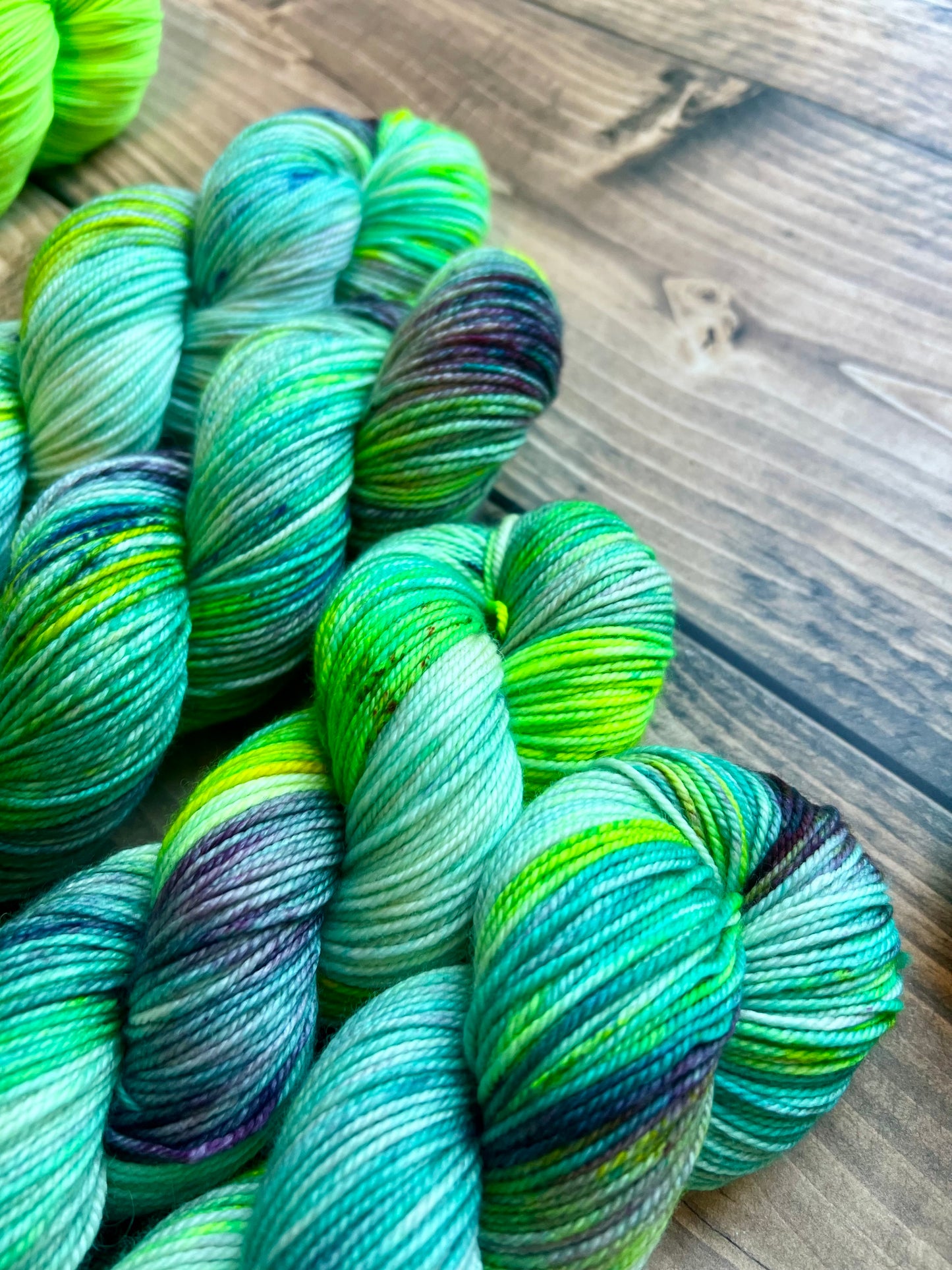 Add a pop of colour to any crafting project with Glowstorm! This fun yarn features neon greens, deep greens, blue, and purple, making it perfect for adding a playful touch to your creations. Let your imagination run wild with the vibrant hues of Glowstorm.