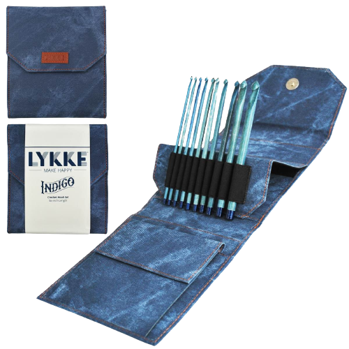 Lykke Indigo Crochet Hook Set | Blue Birch Wood Crochet Hooks with Case | Sustainable Wooden Crochet Hook Gift Set