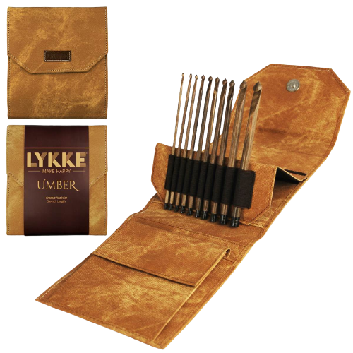 Lykke Umber Crochet Hook Set | Warm Brown Birch Wood Crochet Hooks with Case | Sustainable Wooden Crochet Hook Gift Set