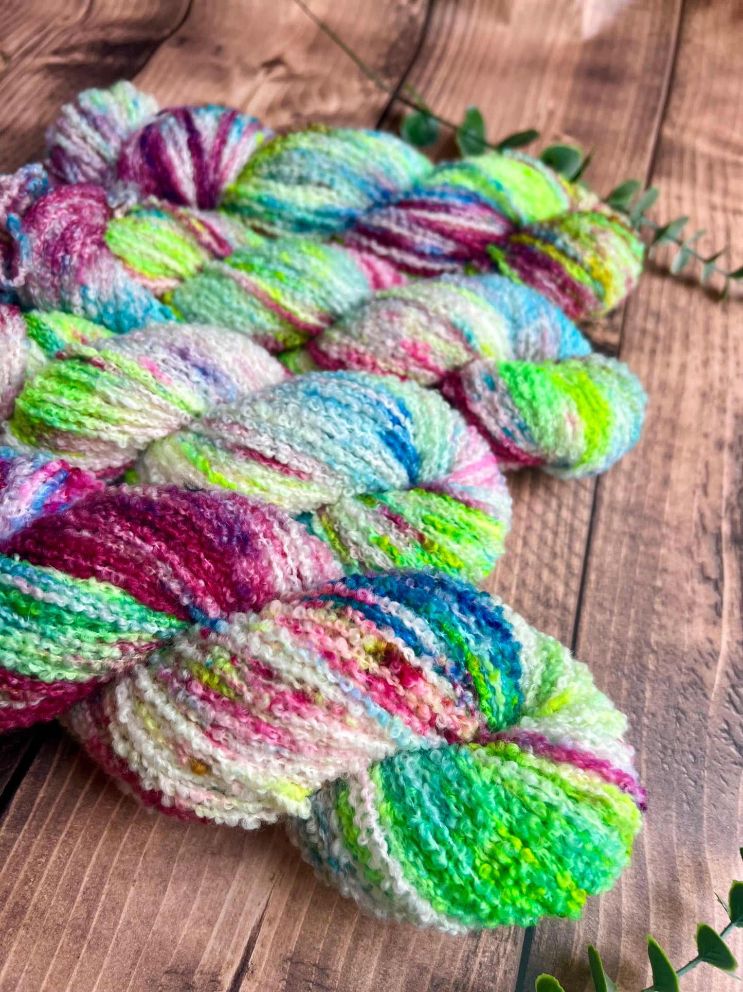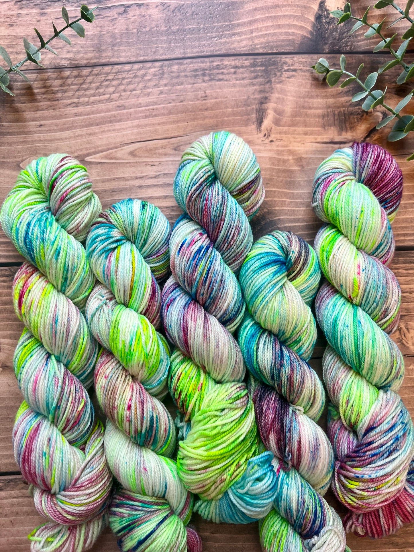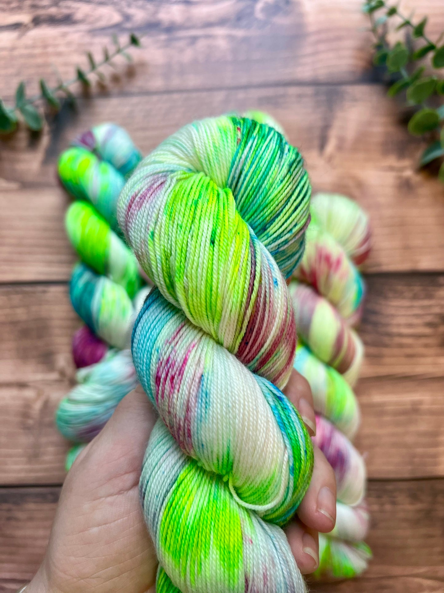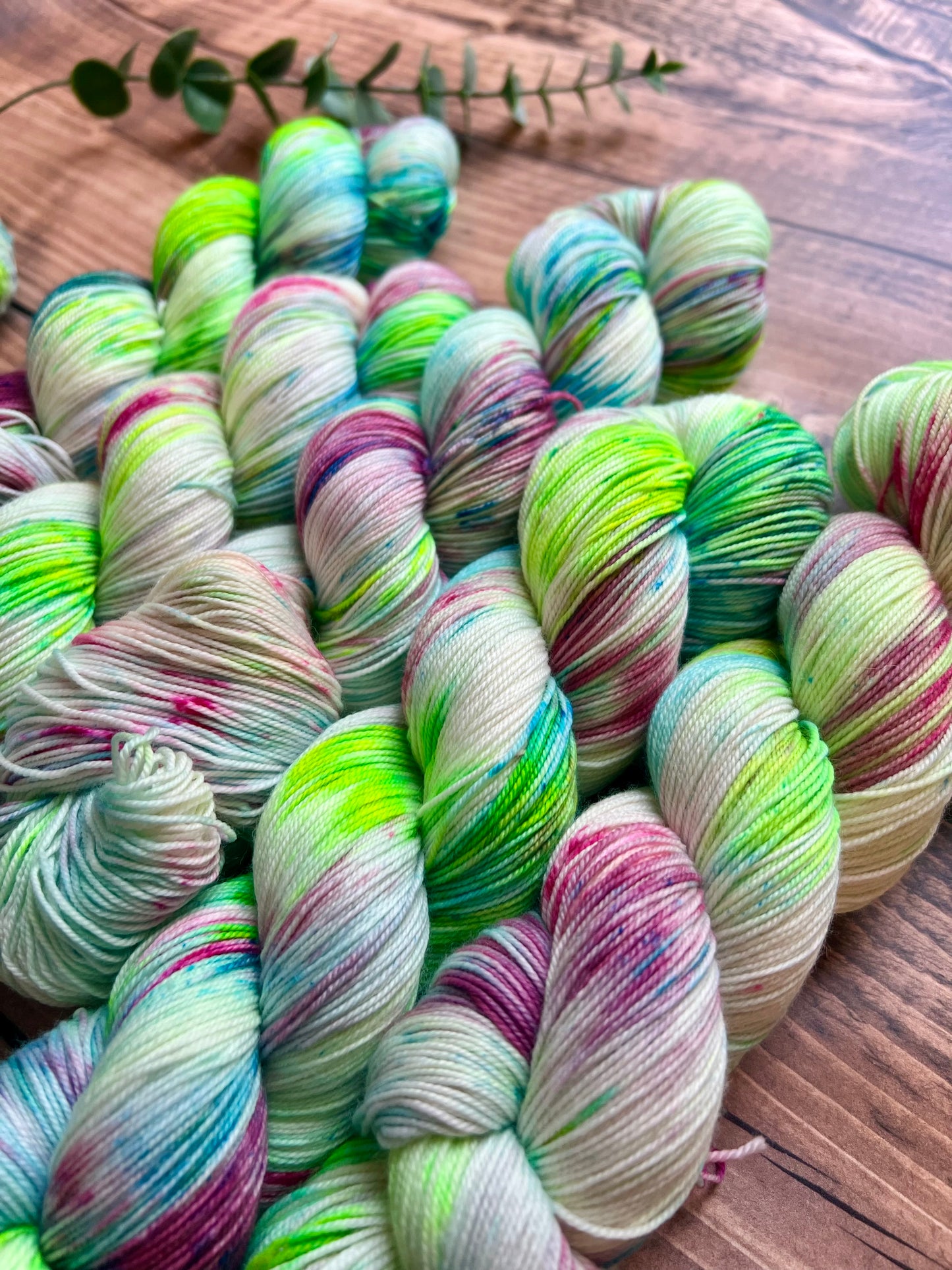 Discover vibrant and electrifying colours with Electic Confetti: lime green, cyan, and fuchsia!