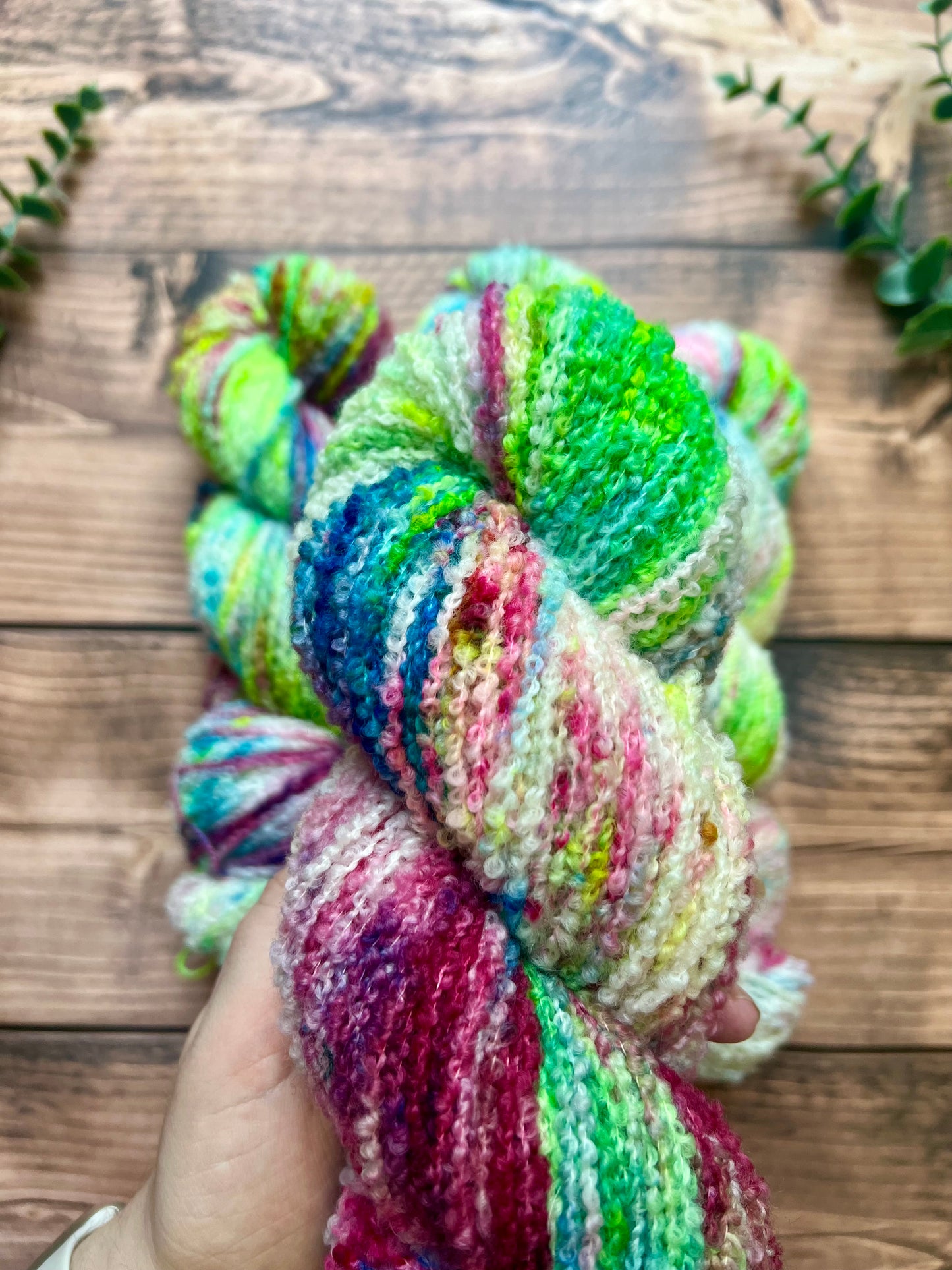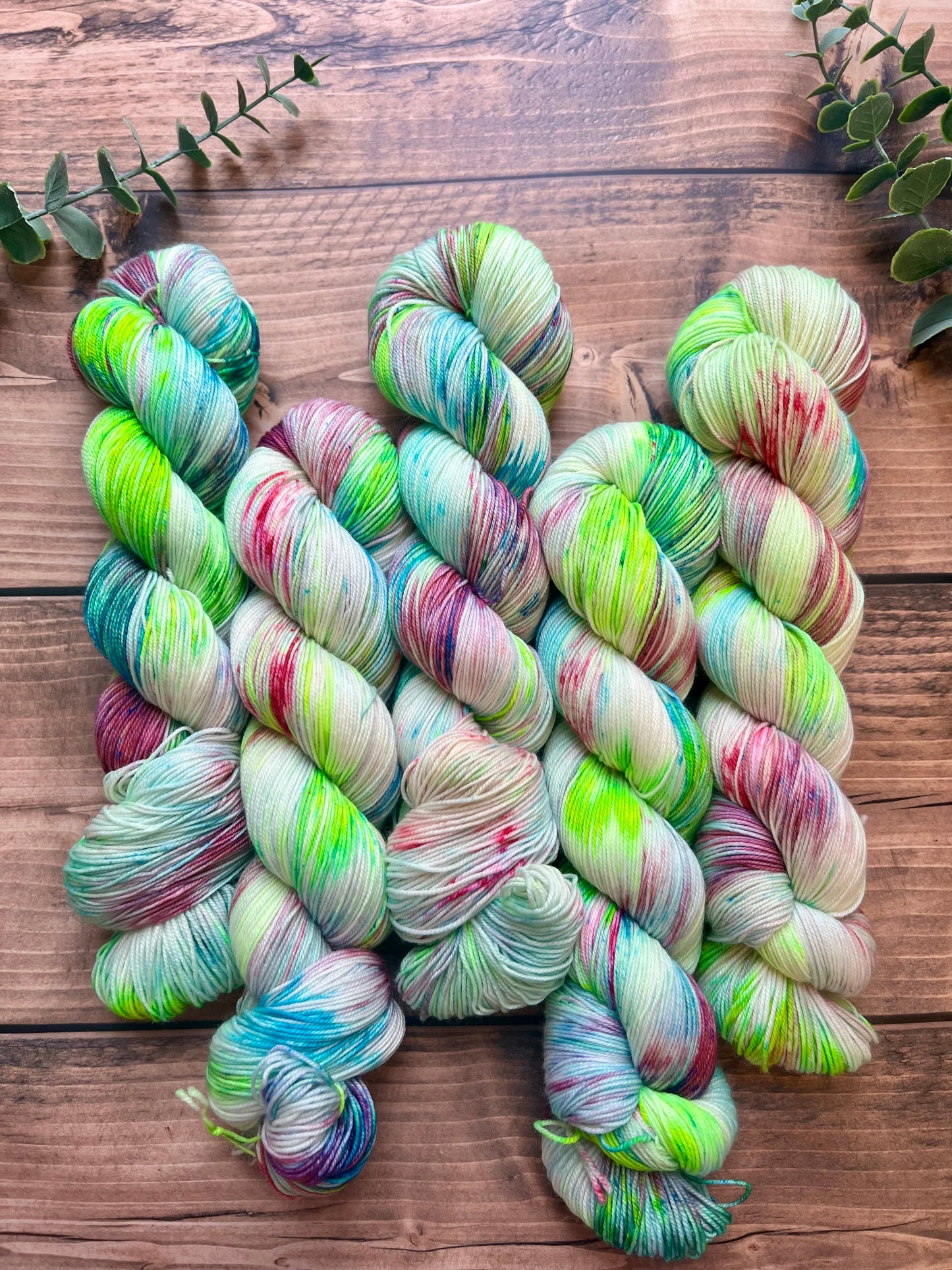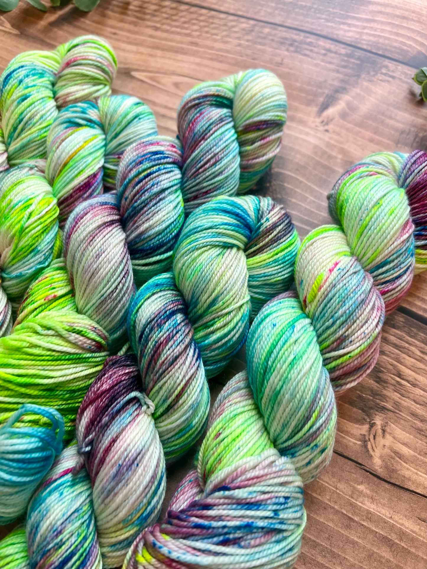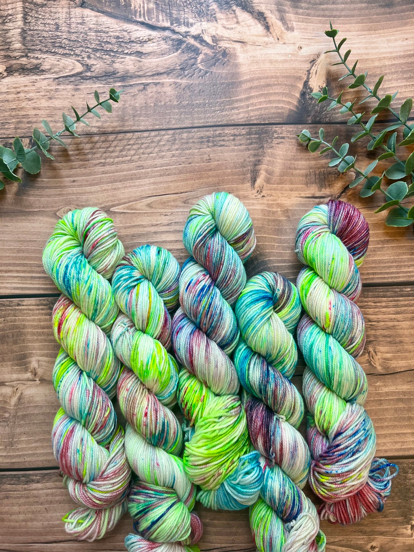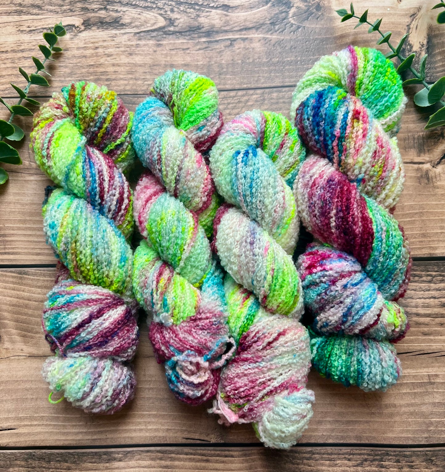 Discover vibrant and electrifying colours with Electic Confetti: lime green, cyan, and fuchsia!