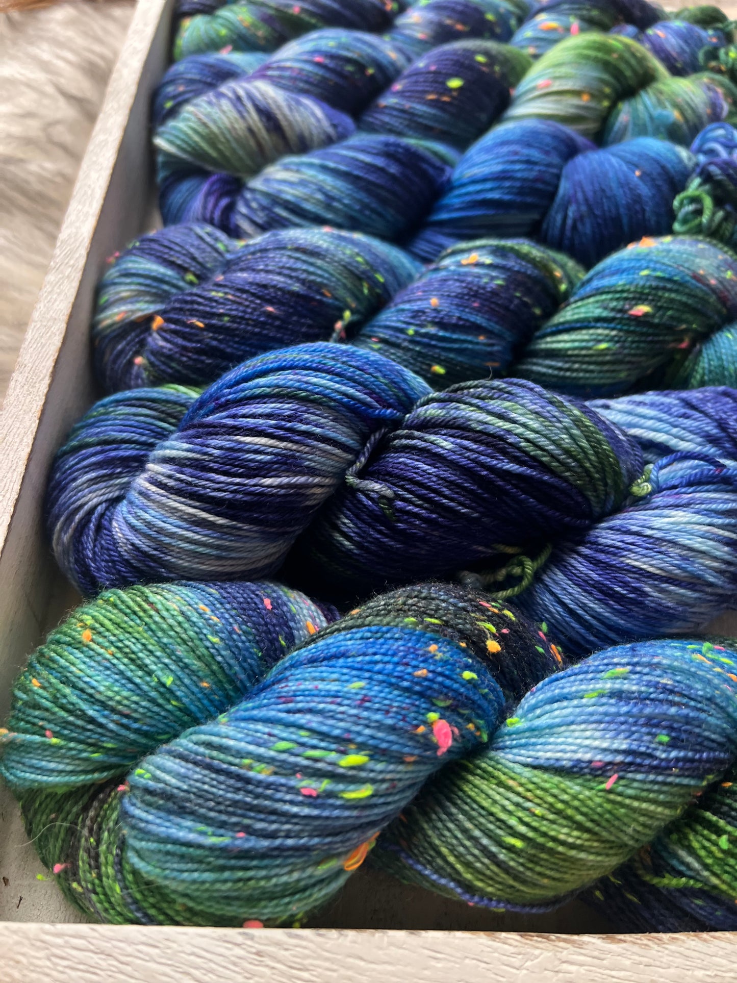 Each skein is individually hand-dyed in small batches, ensuring unique tonal variation that adds character to every project. Perfect for socks, shawls, and accessories that evoke the beauty of coastal waters.